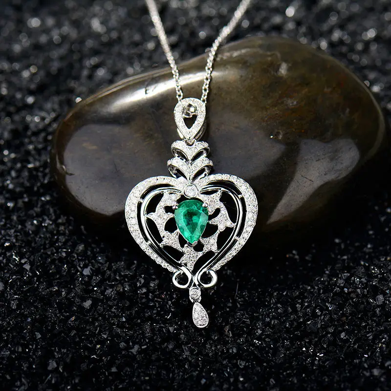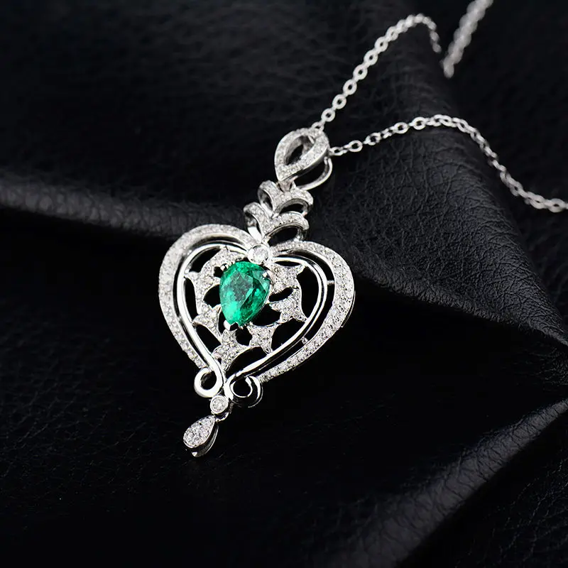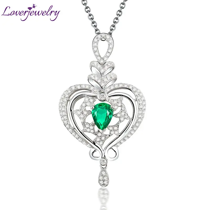 BEST QUALITY Pear 5x7mm Solid 18Kt White Gold Diamond Emerald Wedding Pendant Necklace Loving Gem Jewelry for Gi