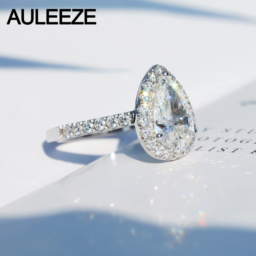 AULEEZE Water Drop Pear Shape 1.5CT Moissanite Diamond 14k 585 White Gold Wedding Engagement Rings