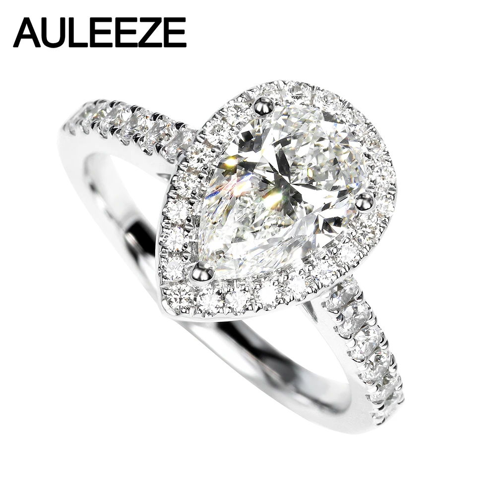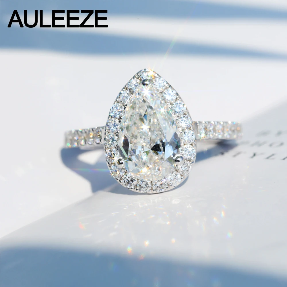 BEST QUALITY AULEEZE Water Drop Pear Shape 1.5CT Moissanite Diamond 14k 585 White Gold Wedding Engagement Rings