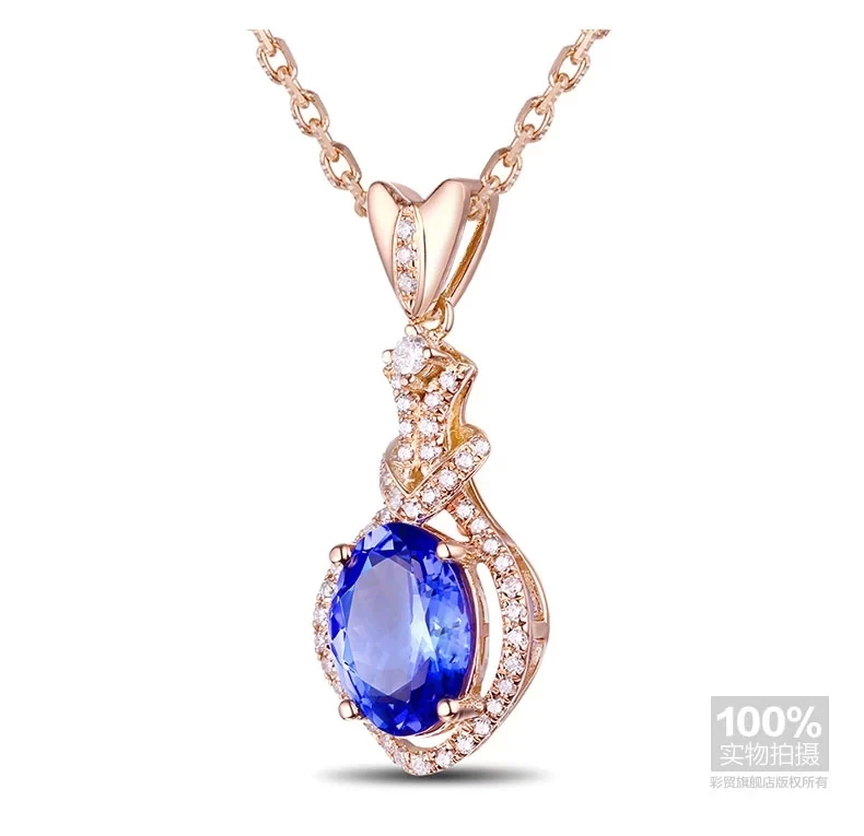 BEST QUALITY CaiMao 18KT/750 Rose Gold 2.2 ct Natural IF Blue Tanzanite AAA 0.22 ct Full Cut Diamond Engagement