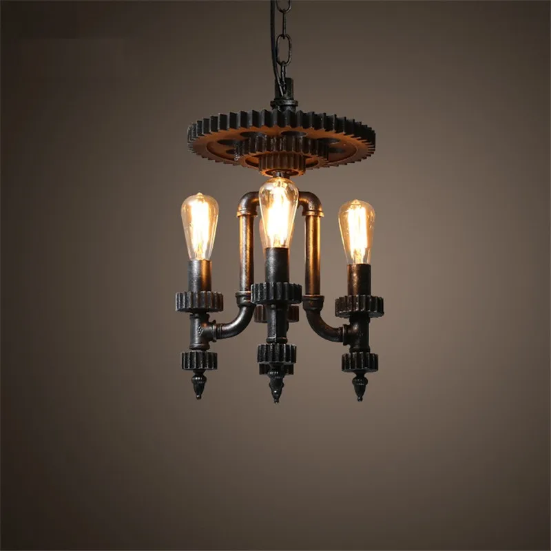 Best Quality Edison Loft Style Water Pipe Droplight Creative Wood Gear Retro Pendant Light Fixtures Hanging Lamp