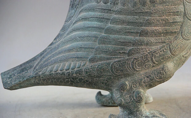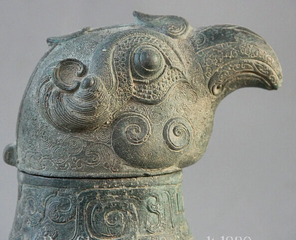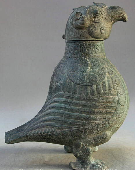 Hot Sale JP S62 14" Old Chinese Bronze Folk Bird owl Statue water food vessel Pot Jar kettle Zun (B0413)