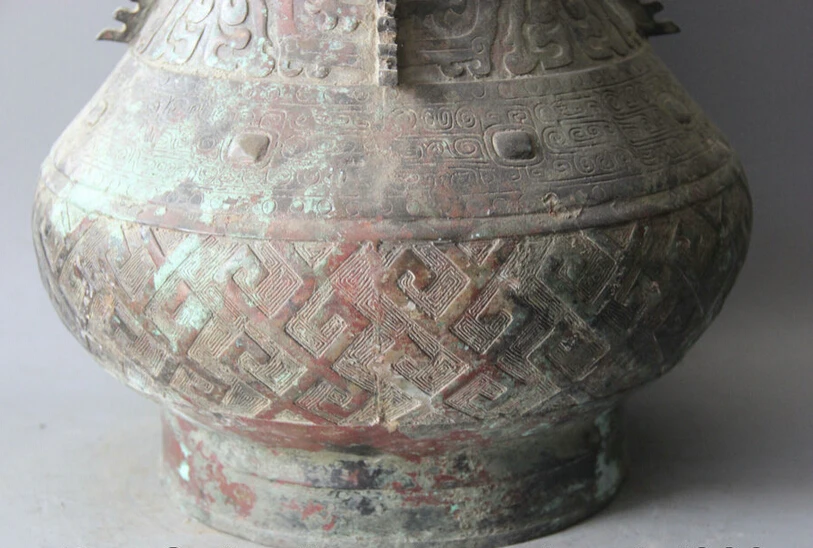 Best Seller Elegant old S5638 19" Archaic Chinese Bronze Beast Face Wine Vessel Water Vase Pot Jar Crock Zun st