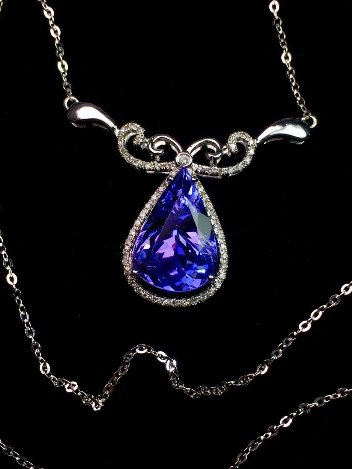 Fine Jewelry Real Pure 18 K white Gold 100% Natural Blue Tanzania Origin Tanzanite Gemstone 4.1ct D