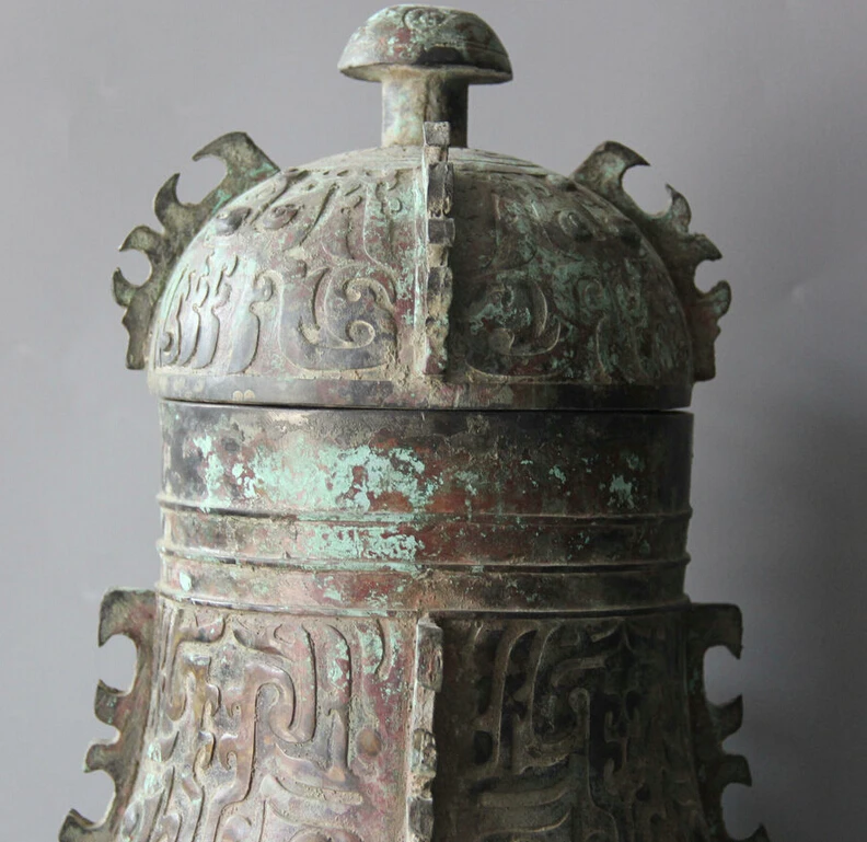 Best S5638 19" Archaic Chinese Bronze Beast Face Wine Vessel Water Vase Pot Jar Crock Zun D0318