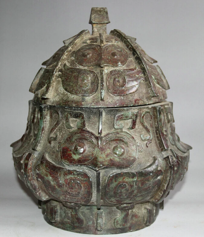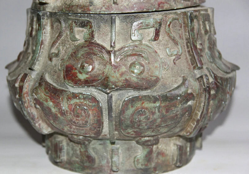song voge gem S5579 11" Old Chinese Dynasty palace Bronze Beast Bird food water vessel Pot Jar Croc